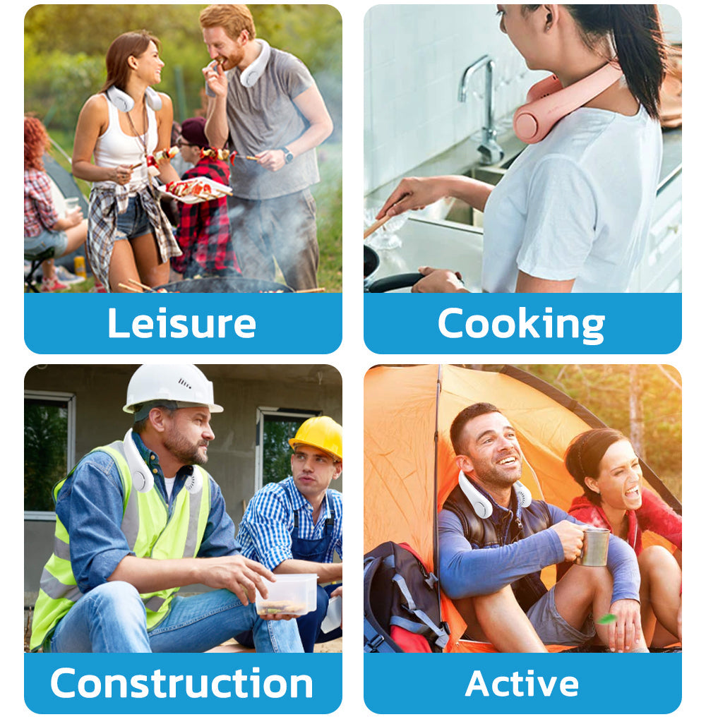 Hands-Free Comfort – No more lugging around heavy, handheld fans. This neck fan stays comfortably in place, letting you move freely while staying cool.